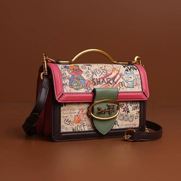 法國MKBM輕奢真皮時尚涂鴉哈頓包女高級質感手提小方包單肩斜挎包