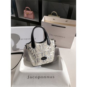 雅各邦真皮銀色蛇紋菜籃包女2025新款包包輕奢小眾高級感手提斜挎