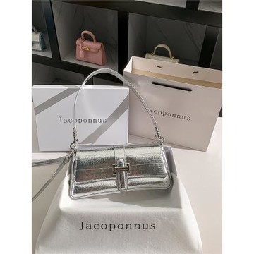 雅各邦真皮銀色蛇紋菜籃包女2025新款包包輕奢小眾高級感手提斜挎