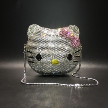 KITTY貓水晶包名媛宴會手包奢華鉆石晚宴包動物鑲鉆女士包新娘包