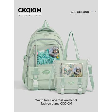 綠色書包初中女生兩件套大容量雙肩包少女手提補習包大學生電腦包