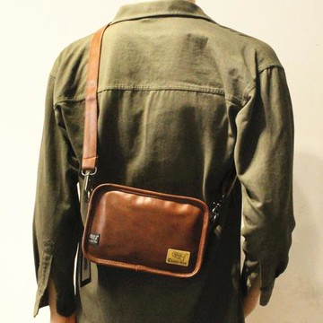 深山九處 男士夏季單肩斜跨小包 真皮皮包包袋 休閑出行包 女