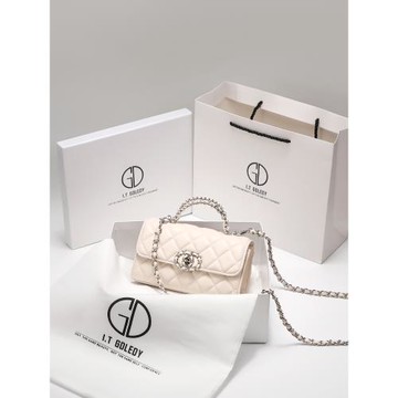 ITGDLEDY小香風真皮小包包女斜挎腰包洋氣百搭手提小包菱格鏈條包