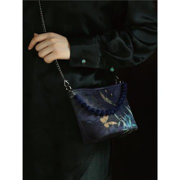 雙姊妹原創香云紗絨珍珠鏈條迷你小包漢服旗袍新中式手拎斜挎包女