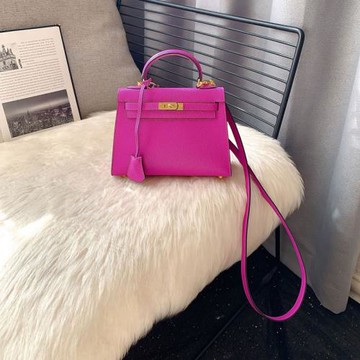 二代凱莉包女包高級感玫紅色包包女斜挎包手提迷你mini真皮凱莉包