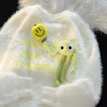 慵懶風2024新款套頭水貂絨毛衣秋冬女穿搭小眾針織衫白色寬松外套