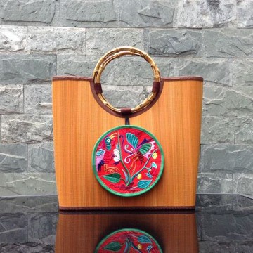 原創新時尚民族風竹絲刺繡花春夏復古竹編織女包手提單肩竹質手工