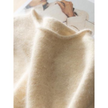 2025新款貂絨毛衣女套頭慵懶風卷邊半高圓領羊絨打底衫針織羊毛衫