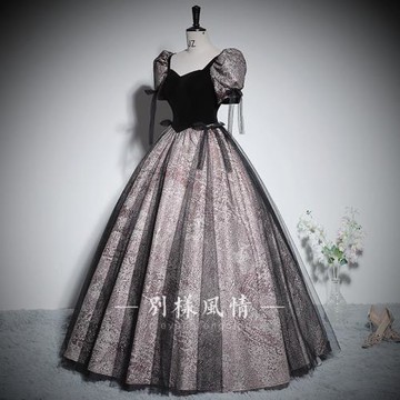 高檔宮廷風泡泡袖蓬蓬裙晚禮服