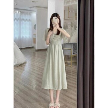 冷淡風設計感驚艷小裙子2026年夏季新款高級感獨特淡綠色連衣裙女