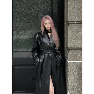 黑色皮真皮風衣女2025春秋新款韓系高級感中長款夾克氣質大衣外套