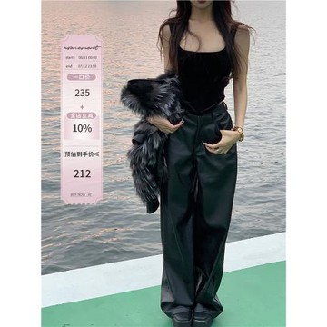 黑色直筒皮褲女高級感秋冬新款高腰寬松垂感拖地PU皮窄版闊腿長褲
