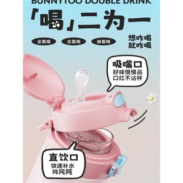 韓國班尼兔雙飲杯保溫杯時尚涂鴉水杯高顏值水杯兒童大容量吸管杯