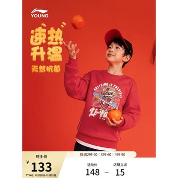 點我下載李寧兒童加絨新年衛衣2025蛇年本命年紅色衣服女童裝男童保暖上衣