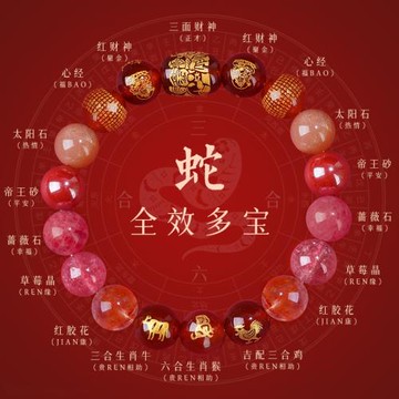 (免運)五行缺火補火喜用火手鏈男女款天然水晶多寶財神手串平衡能量飾品