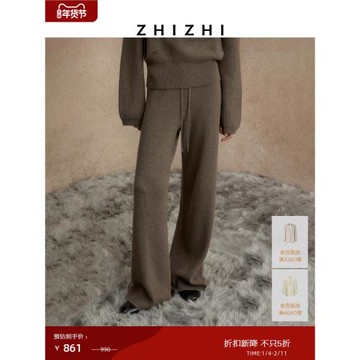 (免運)18點大秀|致知 竹枝詞 坑條闊腿褲女冬休閑保暖顯腿直澳毛