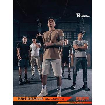 (免運)Monster Guardians男子夏季健身運動休閑短袖圓領修身跑步訓練T恤