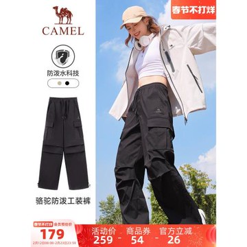 (免運)【防潑水】駱駝運動工裝褲女春冬季加絨休閑褲戶外直筒徒步登山褲