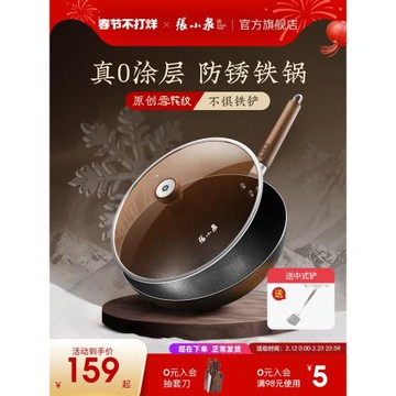 (免運)張小泉炒菜鍋傳統鐵鍋老式炒鍋家用無涂層精鐵鍋燃氣灶用官方旗艦