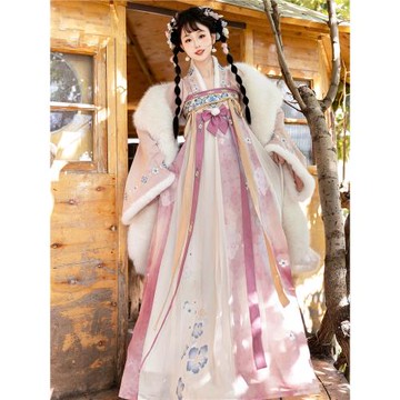 (免運)素羽華裳冰糖丸子 新款唐制漢服女改良齊胸襦裙 斗篷外套秋冬套裝