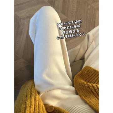 (免運)桑蠶絲羊毛闊腿褲女秋冬2025新款垂感毛呢休閑直筒褲加絨顯瘦長褲