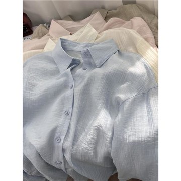 涼感冰絲肌理感藍色防曬襯衫女夏季輕薄飄逸休閑百搭長袖襯衣外套