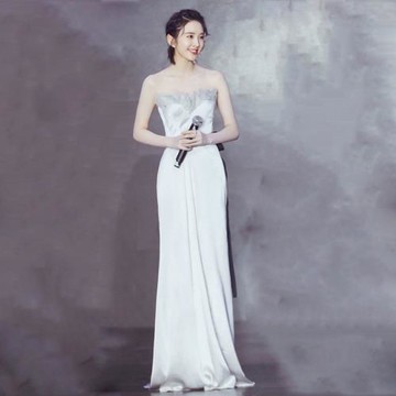 名媛高級宴會紅毯輕奢晚禮服主持人明星裹胸露背墜地收腰系帶長裙