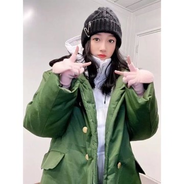女生軍大衣外套綠色大學生冬季保暖棉服時尚花棉襖東北大棉襖加厚