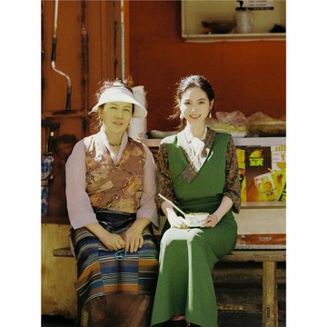 在山野 復古墨綠絕美裙子 新中式輕國風連衣裙 古著碎花西藏服女