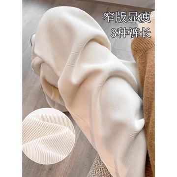白色針織闊腿褲女加厚外穿松緊高腰拖地垂墜感寬松秋冬直筒糯米褲
