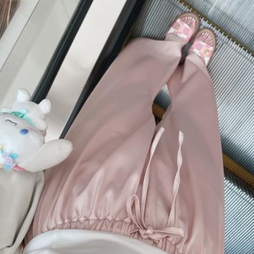 點我下載粉色綢緞面闊腿褲女夏高腰垂感冰絲雪紡醋酸直筒寬松休閑長褲薄款