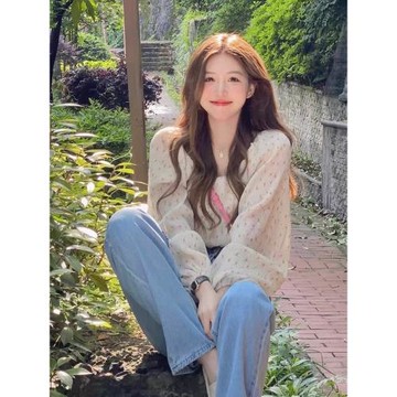 GROVE FOREVER 法式復古設計感小眾長袖雪紡碎花襯衫女款上衣春夏