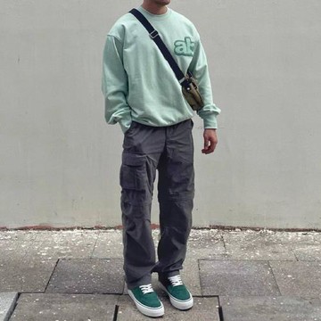美式復古cargo灰色傘兵工裝褲男秋高街寬松百搭cleanfit休閑褲子