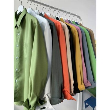純色襯衫男士春季新款美式基礎款長袖襯衣寬松大碼休閑情侶外套潮