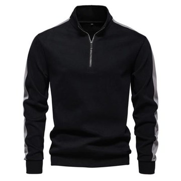BOSS GREEN 條紋印花黑色半拉鍊開領運動衫 上衣(男款)