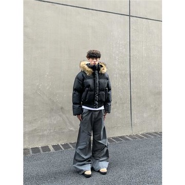 白菜coke基礎棉衣可拆卸帽子/冬季寬松街頭外套男女夾克連帽棉服