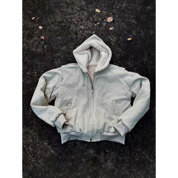 AMBSOM 座山雕加絨加厚外套男cleanfit重磅帆布水洗棉服夾克