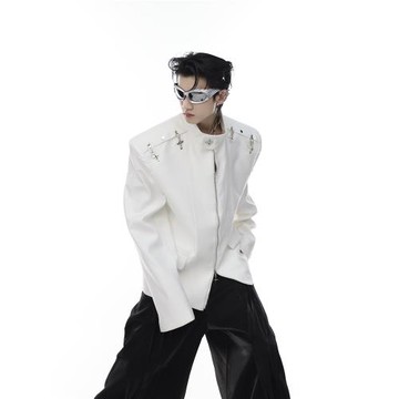 小眾高級感炸街外套男夾克痞帥個性短款廓形墊肩西服演出舞臺裝潮