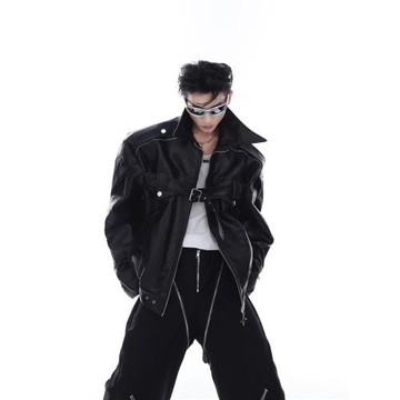 CulturE24s小眾重工解構pu皮衣夾克外套金屬設計感高級機車服男
