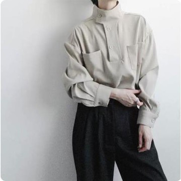 法式cityboy半高領襯衫男小眾設計感寬松長袖輕熟風工裝襯衣外套