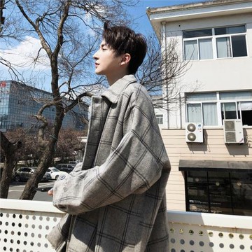 網紅外套男秋冬2024新款韓版潮流毛呢夾克寬松百搭學生ins格子衫