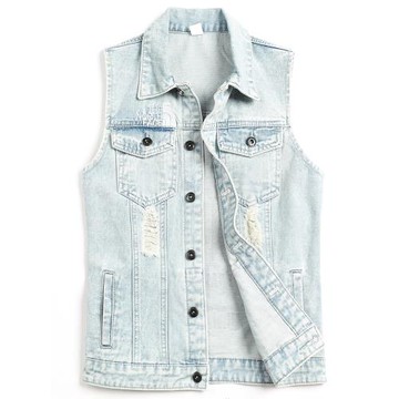 春季牛仔馬甲背心男青年休閑印花馬夾潮流男裝破洞牛仔衣坎肩外套