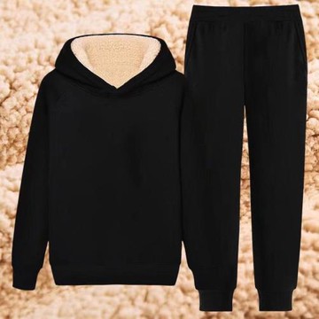 外單女裝剪標外貿大牌撤柜單冬加絨加厚衛衣連帽衛褲子兩件套裝女