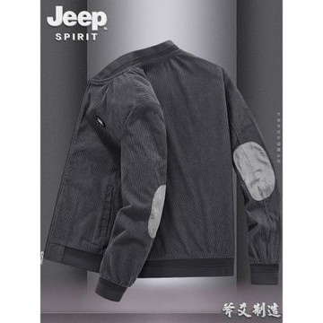 JEEP吉普燈芯絨外套男春秋季上衣服薄款復古潮流休閑棒球領男夾克