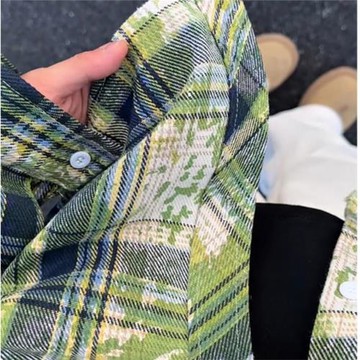 扎染綠色格子襯衫長袖小眾情侶設計感襯衣男美式復古vintage外套