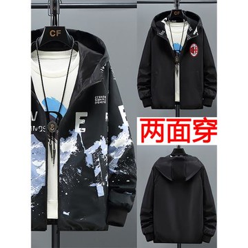 ac米蘭外套男春秋季青少年多特蒙德足球風衣馬競訓練服雙面穿夾克