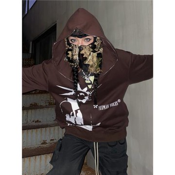 Human Voices原創朋克人像重磅開衫拉鏈衛衣寬松外套秋冬嘻哈潮牌