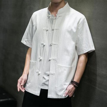亞麻短袖襯衫男夏季薄款中國風男裝休閑棉麻襯衣中式復古盤扣上衣