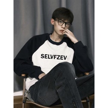 hiphop街頭美式嘻哈撞色插肩圓領衛衣男ins潮牌秋冬百搭外套上衣