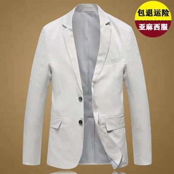 亞麻西服春秋新男士韓版修身中青年帥氣休閑絲光棉麻單件西裝外套
